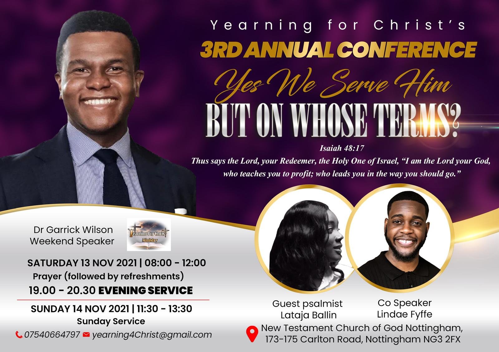 Yearning for Christ present their 3rd annual conference on Saturday 13th-Sunday 14th November, with guest speaker Dr Garrick Wilson, co speaker Lindae Fyffe and guest psalmist Lataja Ballin.